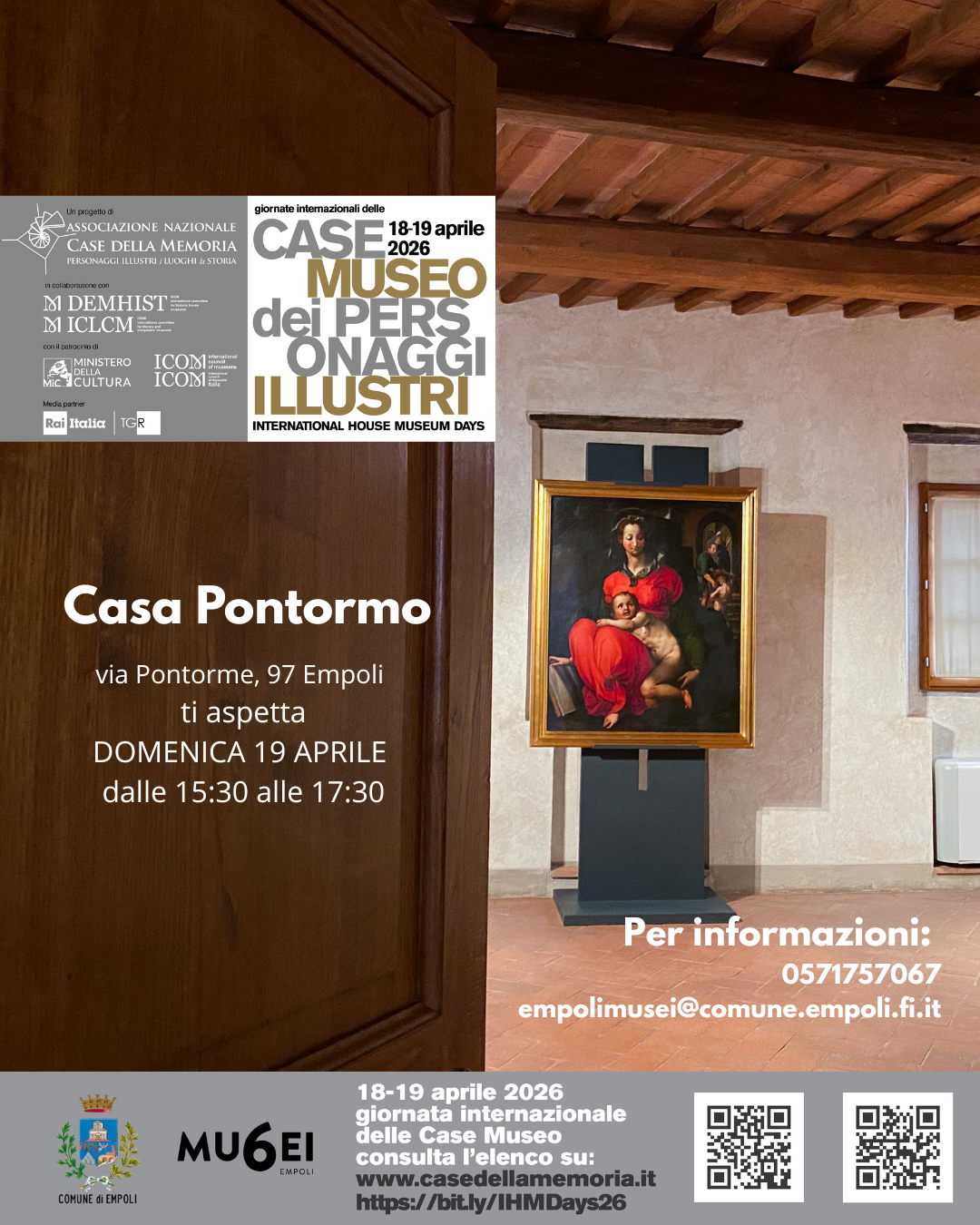 In occasione delle giornate internazionali delle case museo la Casa Pontormo sarà aperta domenica 19 dalle ore 15:30 alle ore 17:30.