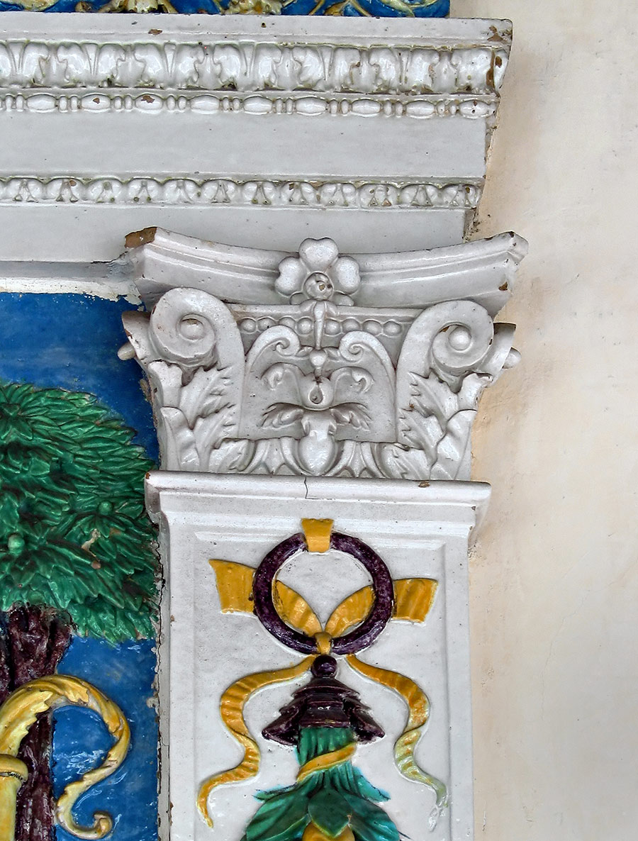 L’artista mette a frutto modelli desunti dai maggiori scultori dell’epoca, da Benedetto da Maiano al Rossellino. In particolare la danza d’angeli sulla nube riprende quella scolpita dal Rossellino nella Natività per la cappella Piccolomini nella chiesa di Monteoliveto a Napoli.