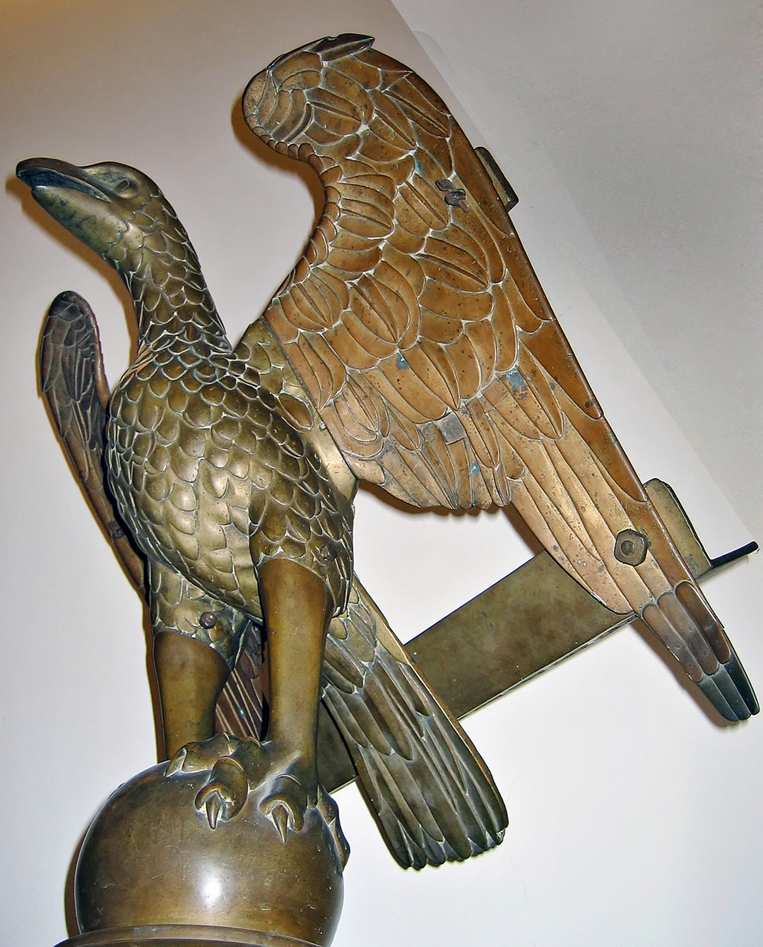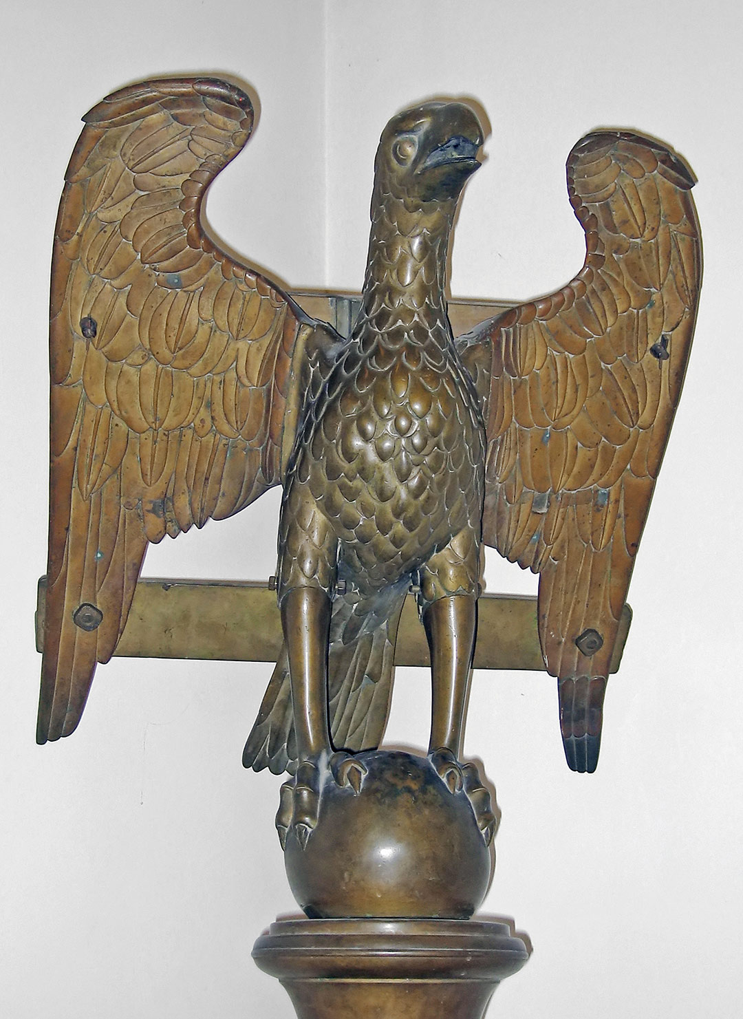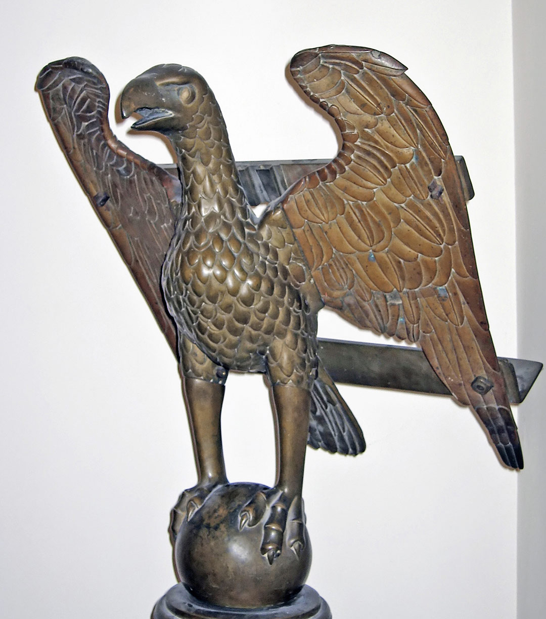 Questo imponente arredo liturgico fa parte del ricchissimo patrimonio di cui disponeva la Collegiata, disperso nel corso del tempo, sia per eventi storici, come il sacco del 1530, che per le trasformazioni intervenute nei secoli XVII e XVIII. Il leggìo, destinato al coro della chiesa, è un raro esemplare di manifattura inglese di cui esistono due prototipi analoghi alla Santissima Annunziata a Firenze. L’iscrizione reca la data 1520 e il nome del canonico Ronconcelli, arcidiacono in Francia nel 1522 e proposto della Collegiata nel 1546.