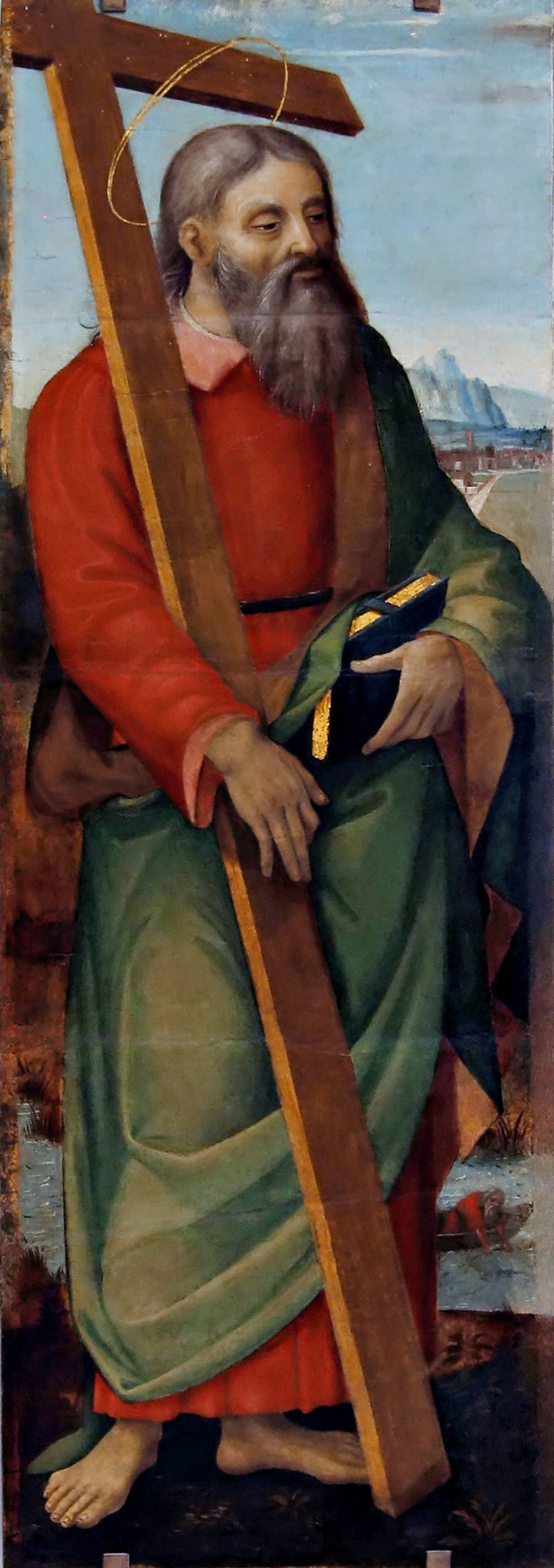 I due dipinti, compromessi da antichi interventi di pulitura e dai danni del tempo, sono stati collegati a un documento del 1506 in cui i confratelli della Compagnia della Veste Bianca affidavano a Raffaello Botticini una pala d’altare raffigurante la Madonna col Bambino e ai lati sant’Andrea e san Giovanni Battista. I due pannelli appartengono sicuramente a una pala di più ampie dimensioni, la cui parte centrale è andata dispersa in un momento imprecisato, forse in occasione degli interventi tardo settecenteschi di ammodernamento della chiesa. In realtà, però, confrontando le due tavole anche con le altre opere di Botticini conservate nel Museo, queste appaiono assai lontane dai modi di Raffaello; i volti, in specie, sembrano evocare in qualche maniera certe soluzioni del Maestro dei Cassoni Campana.