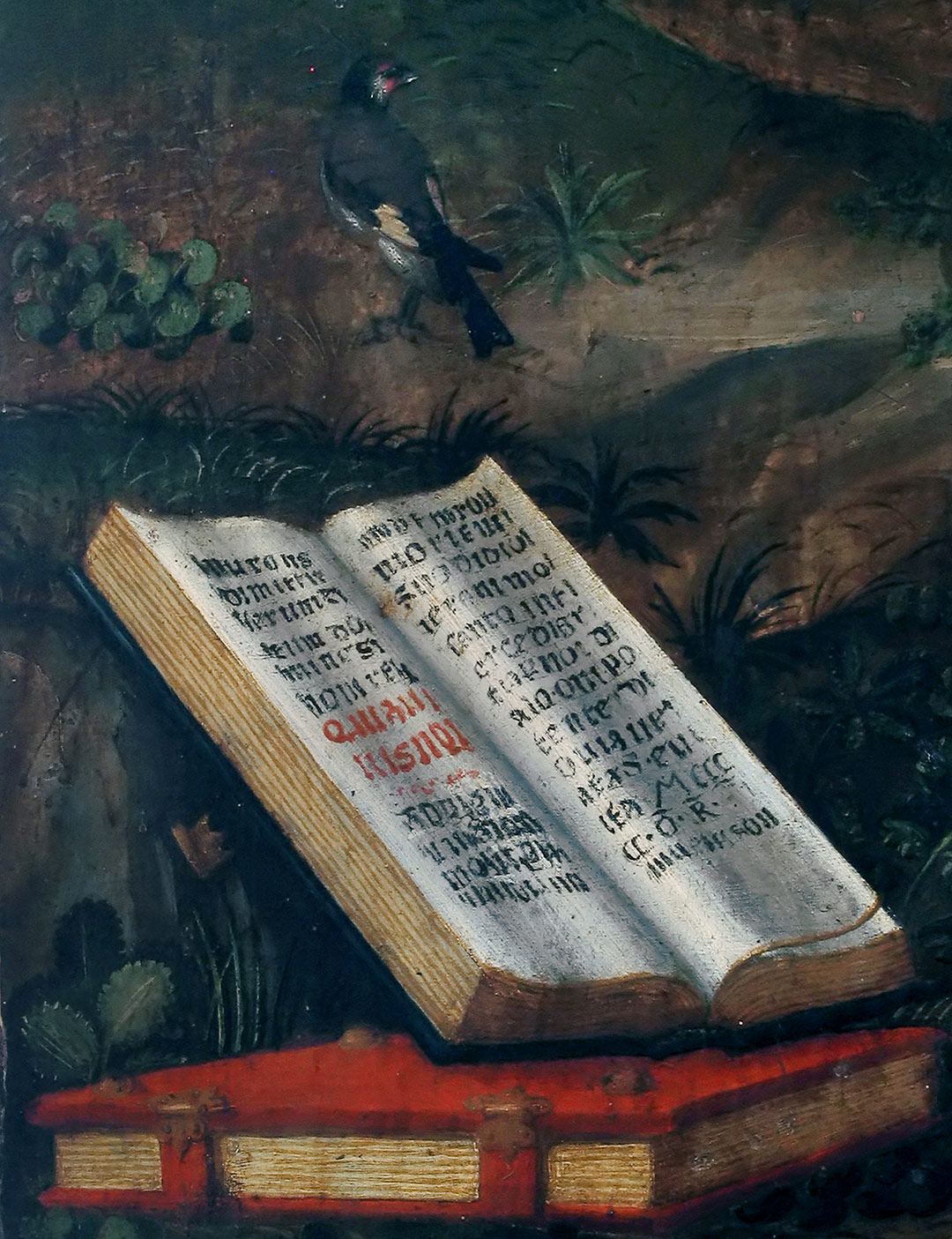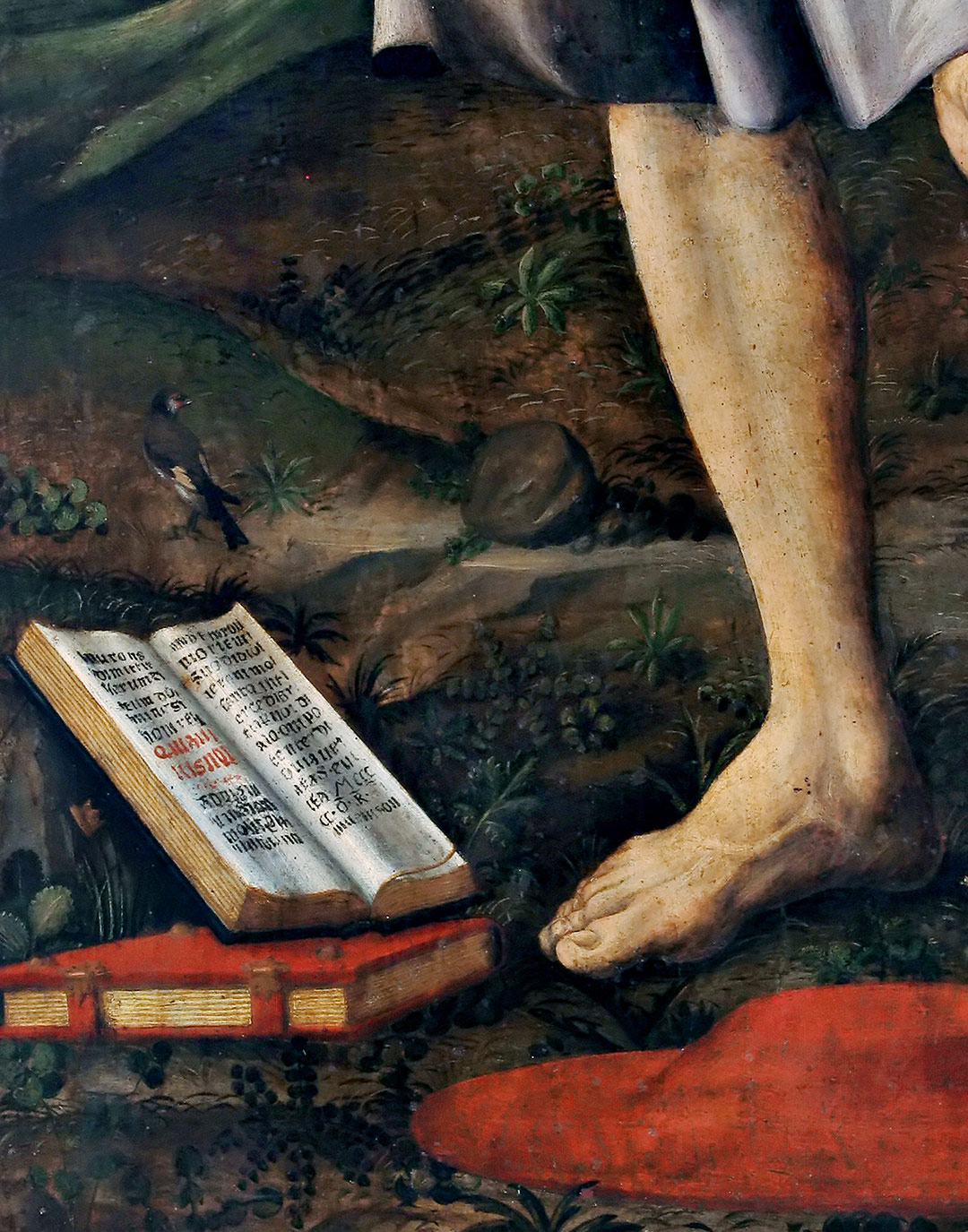 Iscrizioni: IERONIMO DI DIO SANTO INTERCEDI GRATIA P(ER) NOI DALO ONIPOTENTE IDIO VIA VERITAS E VITA E MCCCC O.R.FL. (sul libro aperto di san Girolamo)
