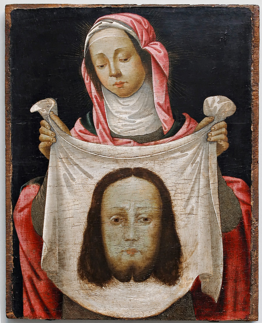 È un piccolo dipinto di carattere fortemente devozionale, in cui la Veronica mostra il velo sul quale è impressa l’immagine del volto di Cristo. Si tratta di un’iconografia particolarmente diffusa nel Nord Europa; il prototipo è un dipinto eseguito da un artista tedesco nel primo ventennio del secolo XV denominato Maestro della Veronica, in cui il volto di Cristo è raffigurato frontalmente, senza i segni della passione, incorniciato dai capelli lisci divisi sulla fronte alta, con la barba bipartita. Questo modello fu replicato in pittura in particolare dai fiamminghi e trovò larga diffusione grazie alle numerose incisioni che ne furono tratte. Il quadretto empolese rivela, nel volto del Cristo, la dipendenza dalla tipologia nordica, mentre la Veronica mostra tratti di stile affini alla cultura di Piero di Cosimo.