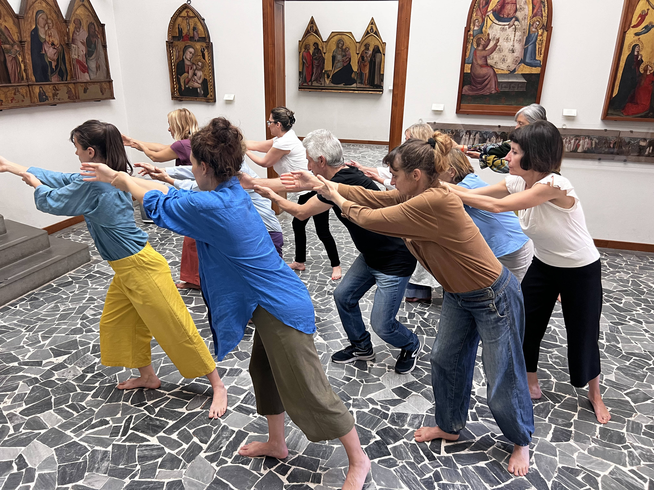 I partecipanti, divisi in due gruppi di lavoro (Empoli e Montelupo Fiorentino), guidati da Virgilio Sieni con l’assistenza artistica di Andrea Bianca Maragliano e Mara Roberto, si incontreranno con gli ospiti dell’RSA V. Chiarugi di Empoli e dell’RSA Il Castello di Montelupo Fiorentino, per dar vita ad un’azione coreografica, ispirata ai gesti dell’opera Il Cristo in pietà di Masolino da Panicale, oggi conservata al Museo della Collegiata di Sant’Andrea di Empoli.